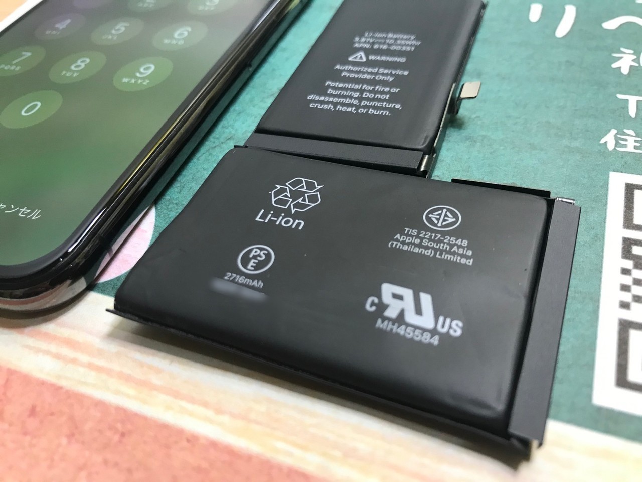 iPhoneXやiPhone8シリーズもそろそろバッテリー交換しないとバッテリー減りが早く感じてくる時期ではないかと思われます。